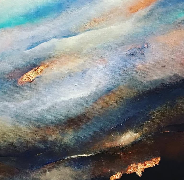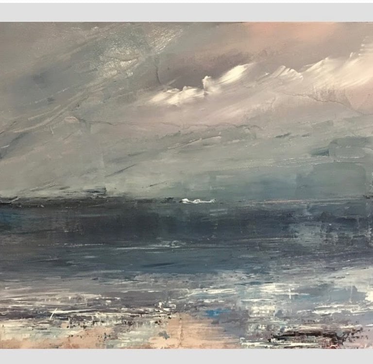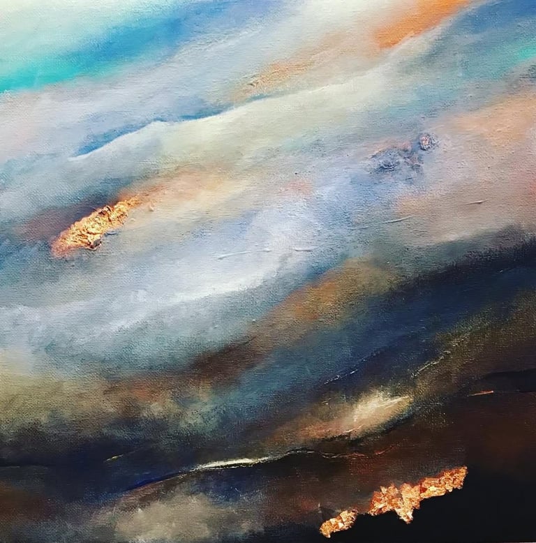 Abstract, acrylic paintings by Leanne, inspired by UK skies and seas.